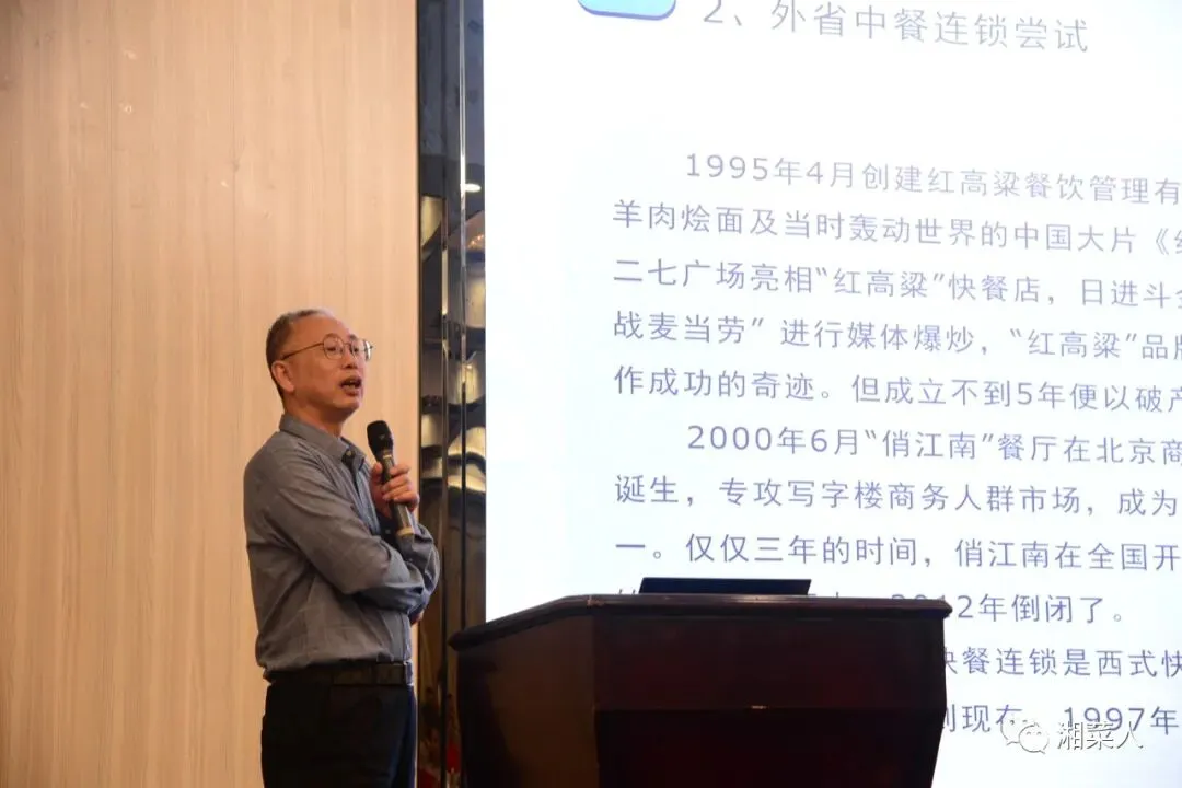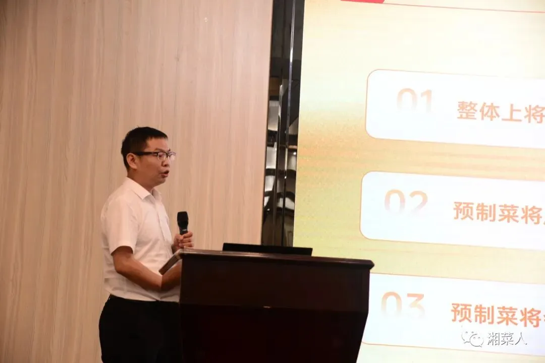 湖南省政府特聘首席标准化专家、湖南省食品质量安全技术协会专家杨代明现场分享了关于预制湘菜的历史渊源,并结合市场数据和表现,为在场精英和从业者们分析了湖南预制菜产业现状和前景;湖南省餐饮行业协会常务副会长、长沙市餐饮行业协会会长任伟政则以自身经历,以湘菜凉菜、早餐、小吃等相关活动事例,对预制菜的爆款菜品的打造、市场开拓和品牌品质的提升等方面,给出了部分方向和建议;湖南新聪厨食品有限公司总经理宋刚则从自身企业自身出发,对预制菜在产业上的创新和发展总结了部分经验。