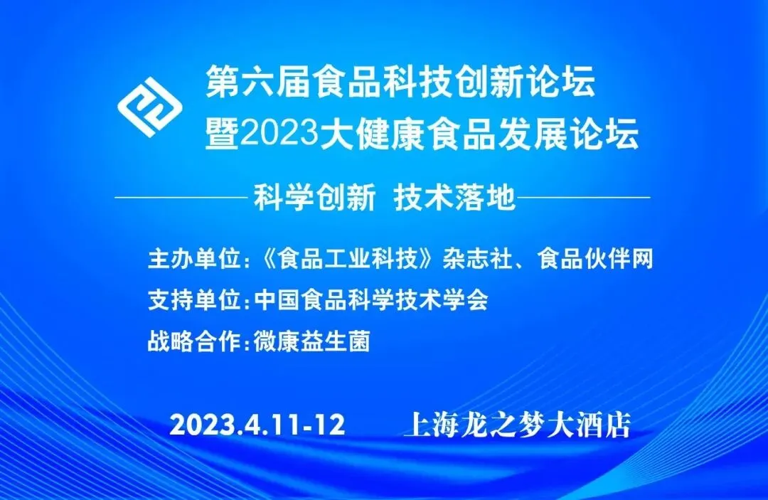 为促进大健康食品行业高质量快速发展,推动食品行业发展创新,《食品工业科技》杂志社、食品伙伴网将于2023年4月11-12日在上海联合主办“第六届食品科技创新论坛暨2023大健康食品发展论坛”。