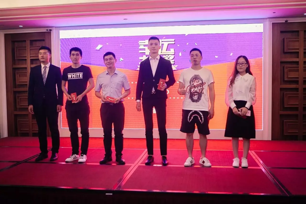 赞助商嘉宾为晚宴幸运者颁奖并合影留念