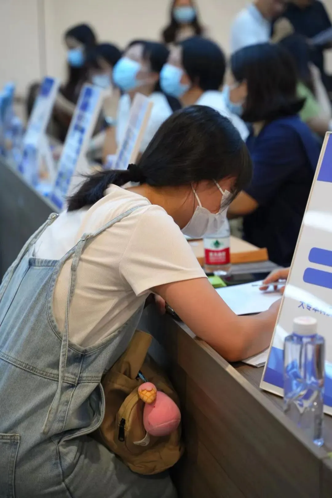 招聘会现场严格按照疫情防控相关要求,对参会人员进行入场测温、扫码登记、查验48小时内核酸检测证明等防疫措施,有序管理,疏导限流。活动现场还设有政策咨询区,由人社、教育、卫健、国资中心等主管部门安排专员,现场为毕业生提供政策咨询服务。