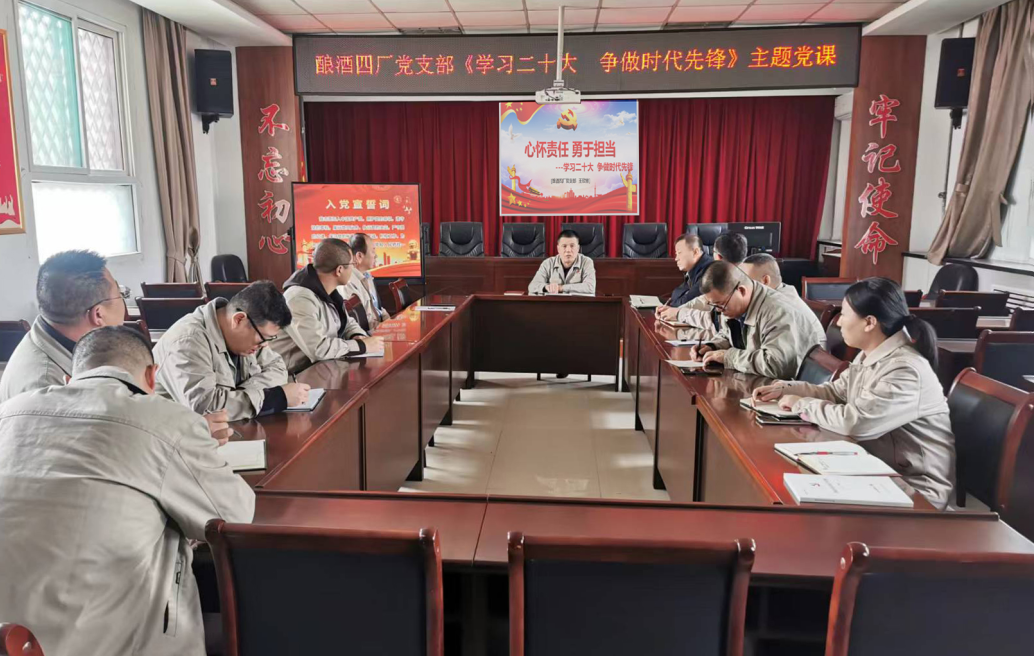 3月23日下午,酿酒四厂党支部书记王欣林为全体党员干部讲授《学习二十大 争做时代先锋---心怀责任 勇于担当》专题党课。