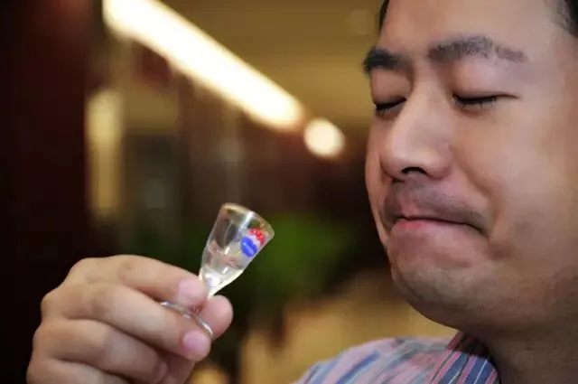 亦可品尝/嗅剩余酒体,纯粮酿造的白酒在乙醇被燃烧以后剩下的是粮食的发酵物,有曲香味和酸酸甜甜涩涩的味道;而勾兑白酒燃烧后剩下的都是化学勾兑成分,有一股骚味。