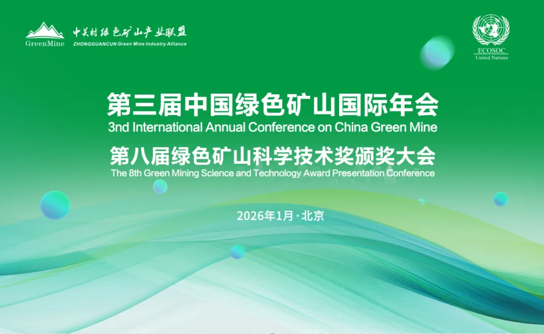 全球矿业绿色转型需要跨国家、跨领域、跨学科的智慧共享与协同合作。为进一步凝聚国际共识与国际交流合作,分享中国绿色矿山建设的前沿技术、典型案例与实践路径,探讨生态文明建设背景下全球矿业可持续发展的新路径、新机遇,中关村绿色矿山产业联盟、中国恩菲工程技术有限公司联合有关单位共同组织的“第三届中国绿色矿山国际年会”于2026年1月16日—18日在北京市召开,会议规模预计1500人。