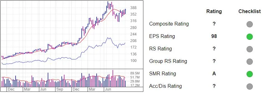 2、在欧奈尔的《投资者商业日报》网站上,欧奈尔为广大投资者提供了下面的图形和评分