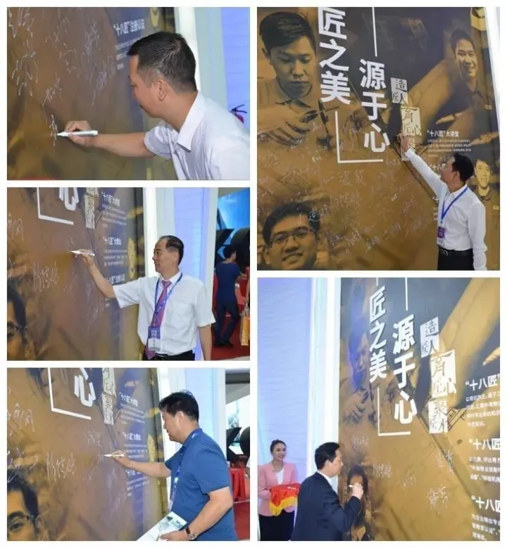 建立起一支适应整体业务发展需要,结构合理、层次分明的高技能、专业化人才队伍,并制定了以“十八匠”为主题的中海物业“匠才计划”,造就一批技能精湛、素质优秀的工匠。“十八匠”分为大讲堂、大舞台、注册认证三部分。匠之美 源于心,逐步提升“中海物业工匠”的品牌影响力。此外,该区域邀请各位到场嘉宾留下墨宝,共同纪念这一时刻。