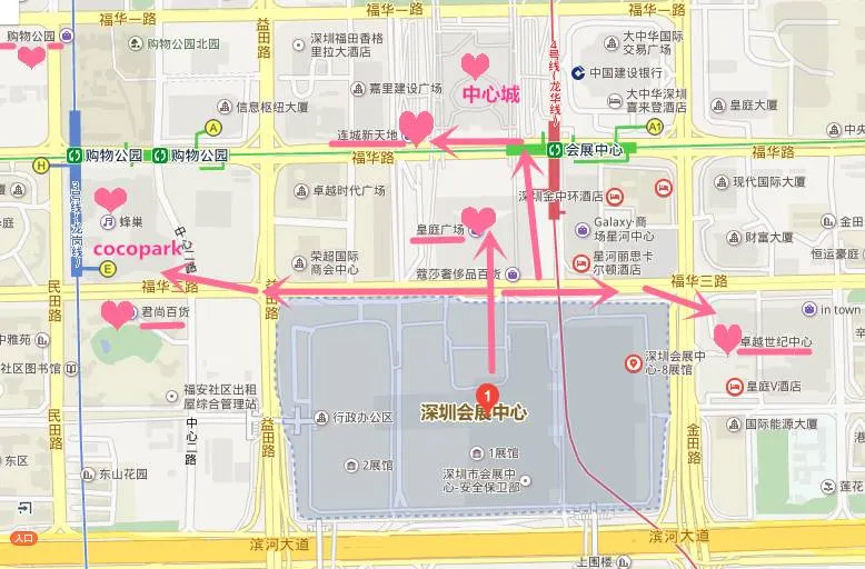 3、掏出手机,用【百度地图】检索【深圳会展中心】,选择交通线路。