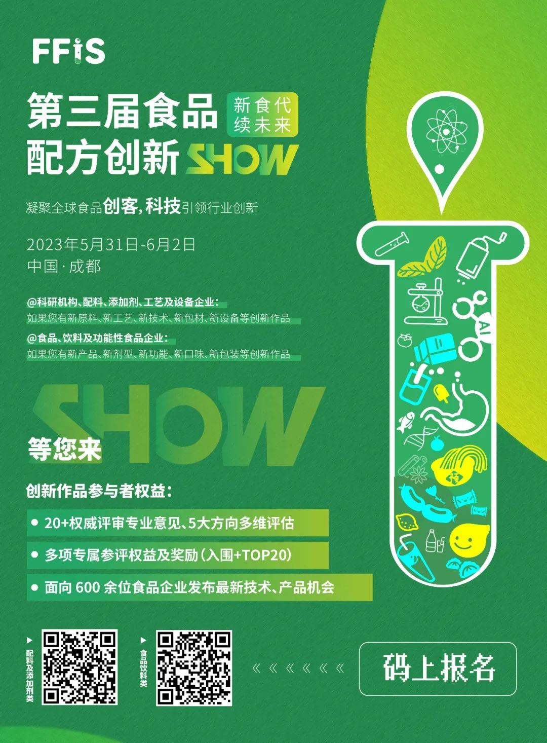 @科研机构、配料、添加剂、工艺及设备企业:如果您有新原料、新工艺、新技术、新包材、新设备等颠覆式的创新,欢迎参与本次创新作品征集,你的作品将被20+食品企业暨专家评审给予专业意见,等你来SHOW!