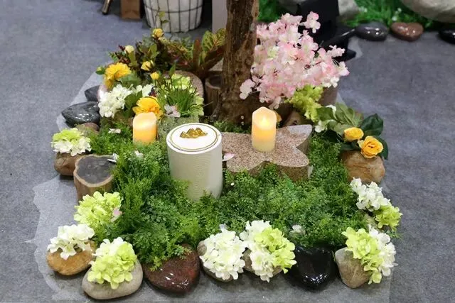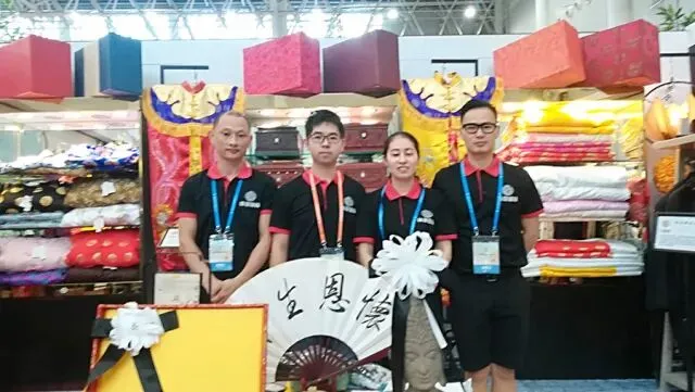 浙江祥泰礼仪服务有限公司秉承第八届中国国际殡葬设备用品博览会“弘扬优秀文化,创新绿色发展”的主题,展示了传统与现代科技相结合的绿色殡礼礼厅布置效果,在江南特色的浙江文化街内独树一帜。展厅内,独具风格的布艺造型加以灯光的衬托,营造出礼厅温馨的氛围,高仿真绢花结合现代科技制作的祭台围坛作品更是充满艺术感,结合公司自主研发的其他环保产品,给观展者呈现了高水准的殡仪场所礼厅布置。展会期间,国内外多位行业大咖莅临祥泰展厅参观指导,给予了高度的肯定。