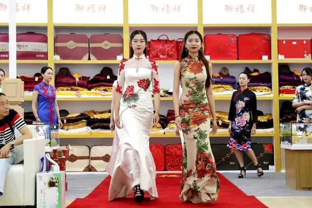走进展会现场,一眼望去,就数御福祥的人气最旺。原来,参观者们都在围着展台兴致勃勃地观看“工装T台秀”。只见模特们身着的旗袍款式多样,以黑、蓝为主,其苏绣工艺更是让图案栩栩如生,庄重又不失美感。据御福祥董事长曹栋介绍,这些服饰都是他们主推的殡葬从业人员工作装。“考虑到现在殡葬从业者越来越年轻化,希望这些款式多样的旗袍工装服,能在严肃的工作之余给从业人员带去不一样的工作体验。”