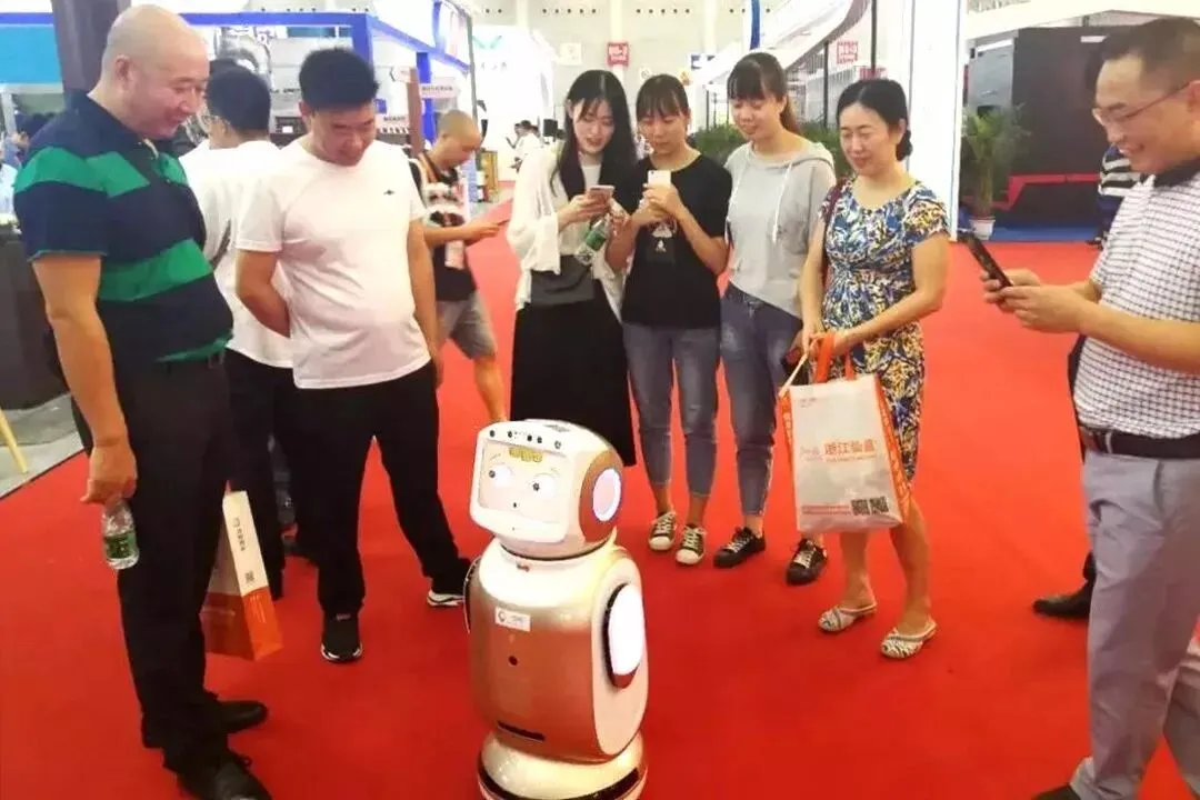 展会现场,机器人一空小宝跟参观者打招呼,用唱歌、跳舞的方式欢迎前来参观的观展人员。