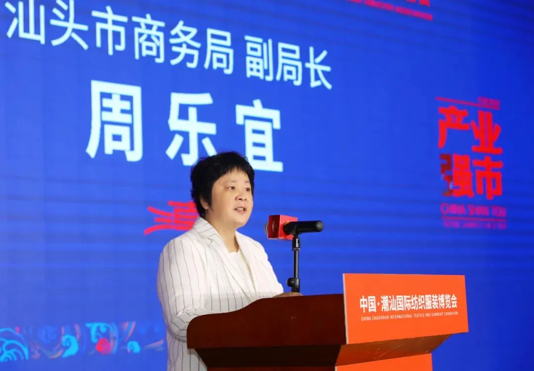 汕头市纺织服装产业协会常务副会长马庆渲代表协会对出席活动的领导、嘉宾表示欢迎和感谢,并对2024年第三届潮汕服博会的亮点进行详细介绍。