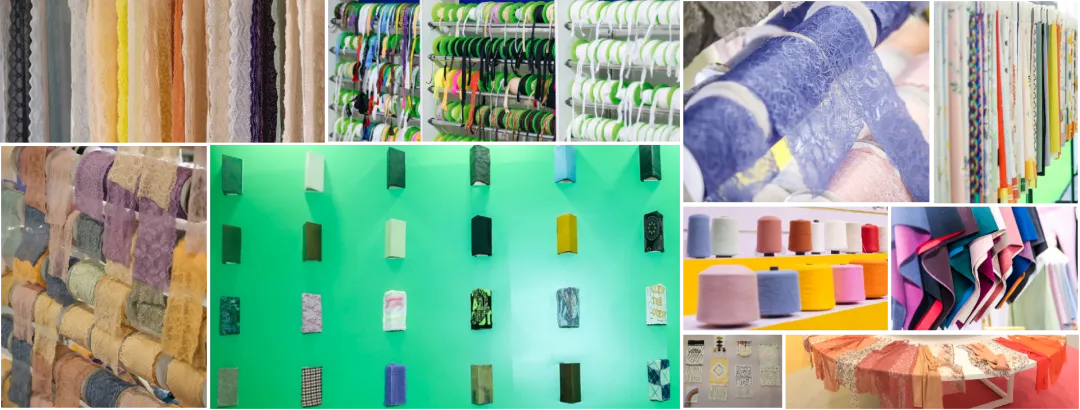 在面辅料区上,更是集行业创新/时尚于一展,如石墨烯、远红外、多花型、四面弹、塑身面料、真丝花边、泡泡蕾丝、双层睫毛、抗菌面料,还有各种模杯、织带、纽扣、花仔等辅料。
