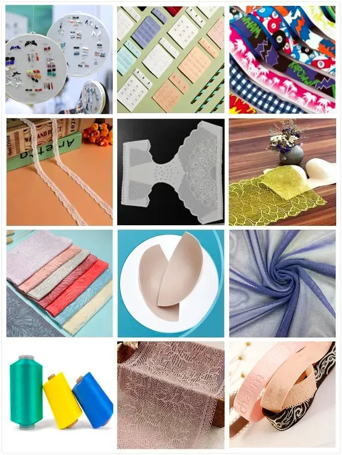 在面辅料区上,更是集行业创新/时尚于一展,如石墨烯、远红外、多花型、四面弹、塑身面料、真丝花边、泡泡蕾丝、双层睫毛、抗菌面料,还有各种模杯、织带、纽扣、花仔等辅料。