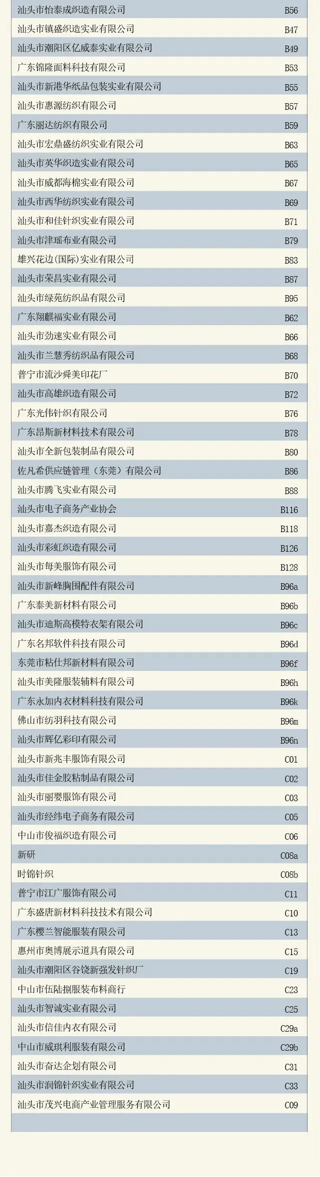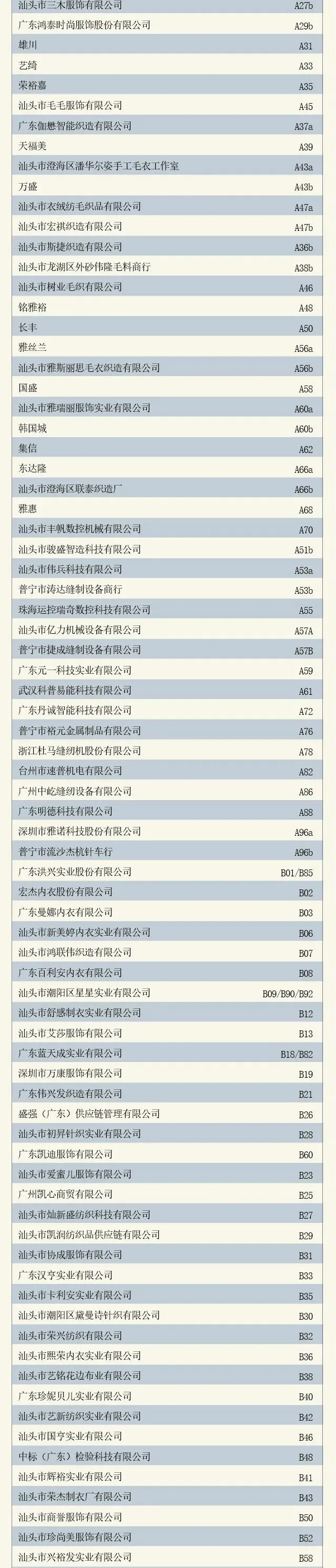 汇聚名企强势出击,30+汕头纺织龙头企业,300家参展企业/品牌盛装以待!其中包括芬腾、宏杰、都市丽人、安之伴、凯迪、猫人、拉飞逸、茂兴、跃嘉、蓝天成、明德、盛强、亿威泰、世泰智造、爱戴、万康、荣杰、香月、华阳、新美婷、曼娜、闺蜜本色、玉姿一族、雅真、造福鸟、莎倩、利宝莱、汉亨实业、泰迪博士、精雅、佰伦世家等行业龙头企业以及澄海毛织产业集群将重磅参加展会,并携带创新研发的新产品亮相展会。