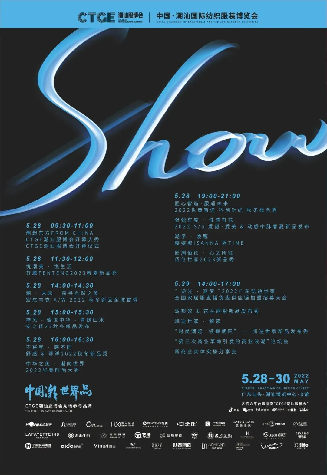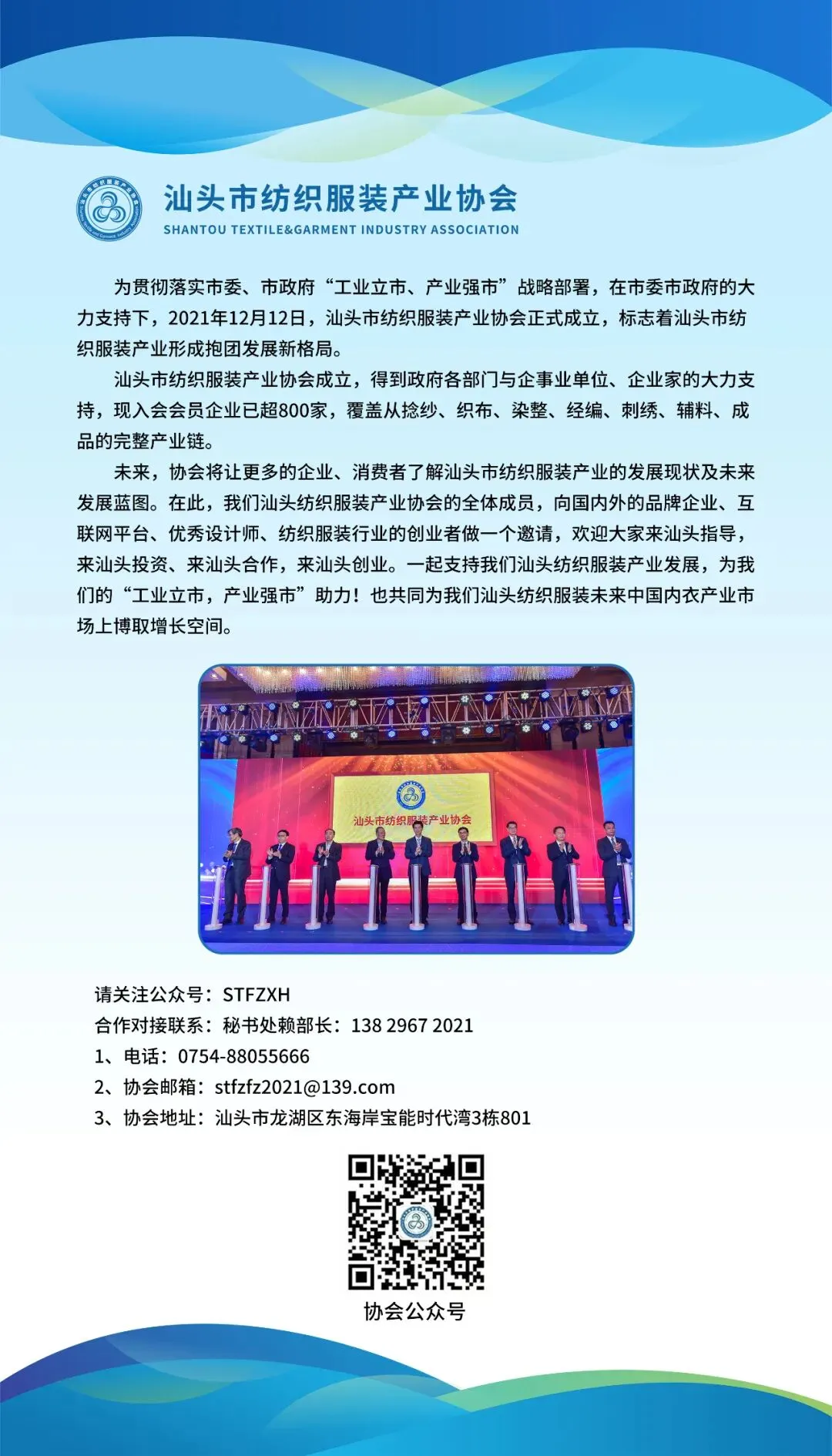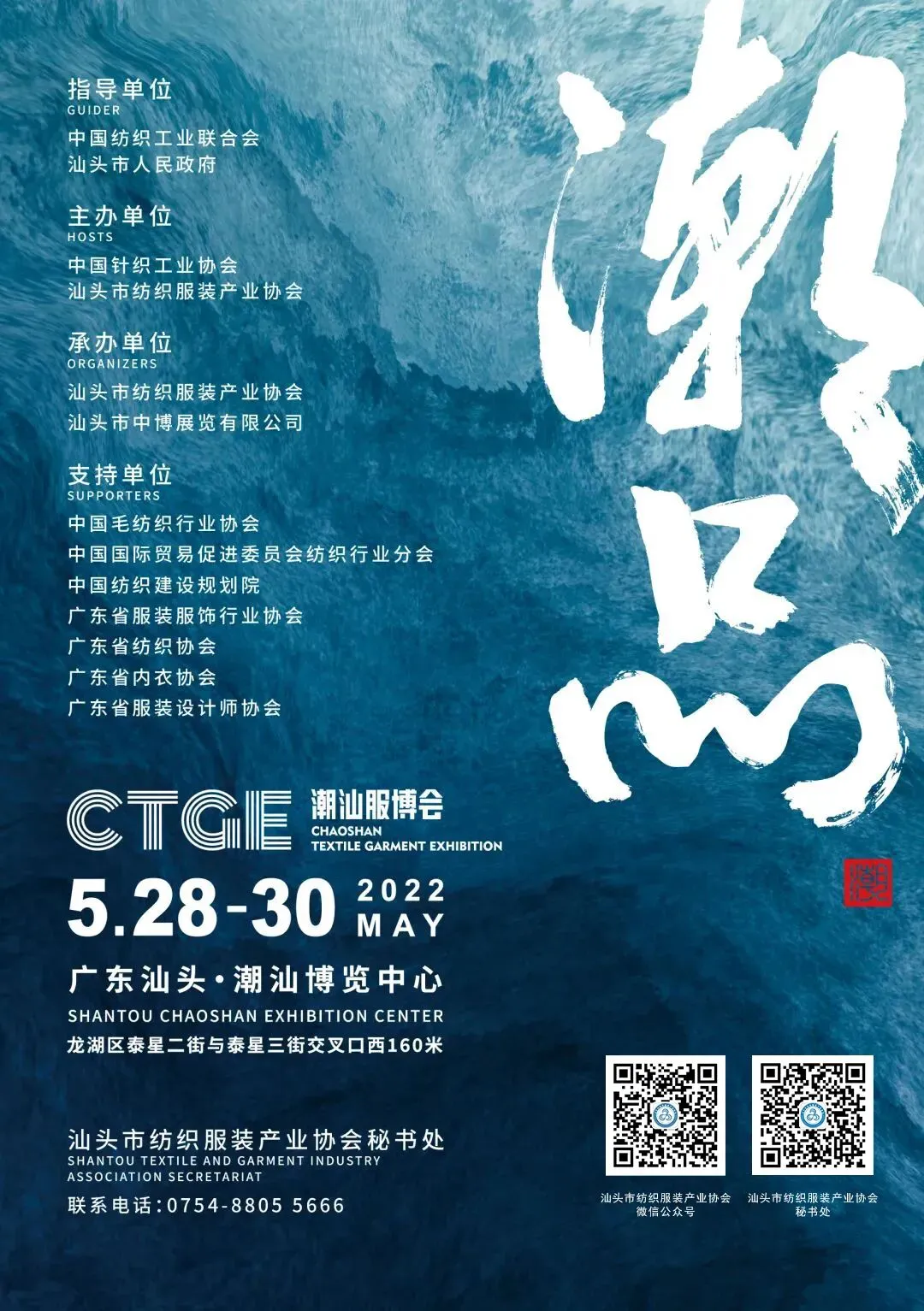 为贯彻落实汕头市委、市政府“工业立市、产业强市”战略部署,由汕头市人民政府、中国纺织工业联合会指导支持,中国针织工业协会、汕头市纺织服装产业协会共同主办的首届中国•潮汕国际纺织服装博览会将于2022年5月28日-30日在汕头举办,本次大会的筹备,得到全国各协会、社会各界大力支持,这场纺织服装行业的盛会,弘扬潮汕人敢拼敢闯、自强不息、坚韧不拨的潮商精神,汇潮智、聚潮力。举办展会将打造面向全球的城市品牌宣传名片,也是一个体现产业集群抱团的营销载体,对产业链企业拓展市场渠道、推广区域品牌、加快产业链整合有重要的促进作用,擦亮全球纺织服装产业品牌,再创“汕货”新辉煌。