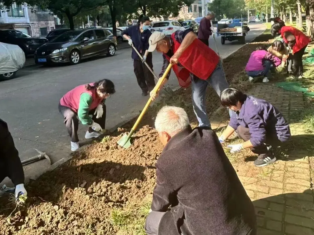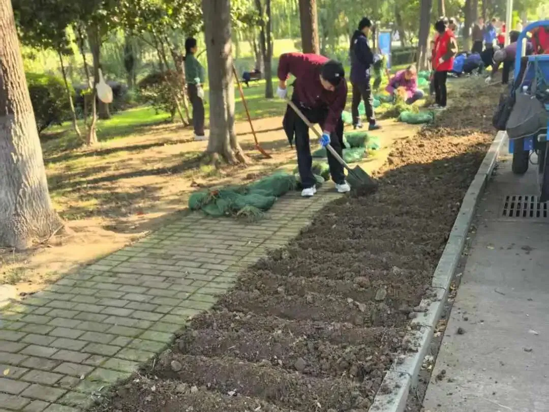 活动现场,党员志愿者们精神饱满、分工协作,一派热火朝天的劳动景象。有的手持铁锹翻土挖坑,动作娴熟有力;有的小心翼翼搬运麦冬幼苗,细心分拣整理;有的弯腰栽种、培土压实,每一个环节都一丝不苟;还有的耐心清理周边杂草、平整土地,确保幼苗扎根生长。大家相互配合、默契十足,汗水浸湿了衣衫,却挡不住心中的热情与干劲。党员志愿者们一边劳作,一边交流养护心得,还向过往居民宣传绿色环保理念,呼吁大家共同爱护小区环境、守护共同家园,带动居民参与到小区绿化养护中来。