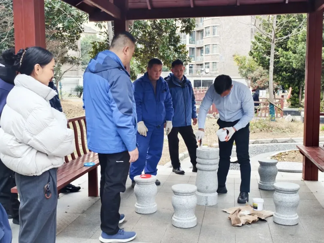 与此同时,园区D区亭子、湖边篮球场亭子也迎来了全新变化。崭新的石座椅悄然“上岗”,为往来业主提供了舒适的休憩空间。茶余饭后,老人们可以坐在石椅上闲话家常;运动间隙,年轻人能够在此歇脚放松;孩子们也能围着座椅嬉戏玩耍,处处洋溢着温馨和睦的氛围。