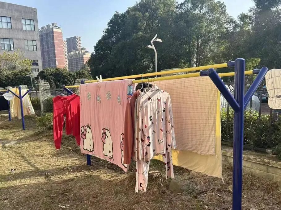 为解决业主日常晾晒难题,物业将捐赠的晾衣杆,已陆续在园区各指定区域有序安放。整齐划一的晾衣杆,既告别了以往衣物随意悬挂的杂乱,又让大家的被褥、衣物能充分享受阳光晾晒,贴心守护每一户的洁净生活。