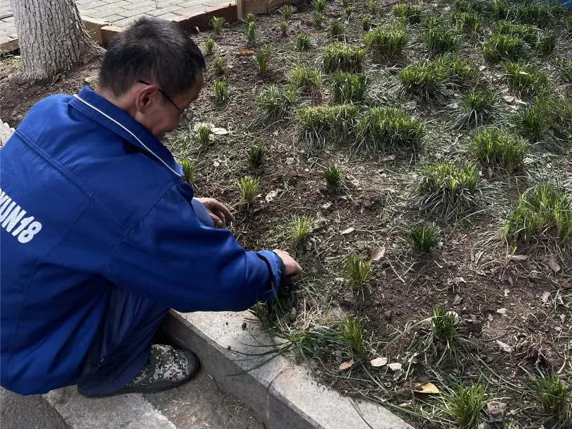 为持续优化小区生态环境,改善部分区域植被稀疏问题,服务中心组织绿化工作人员进行补种工作。