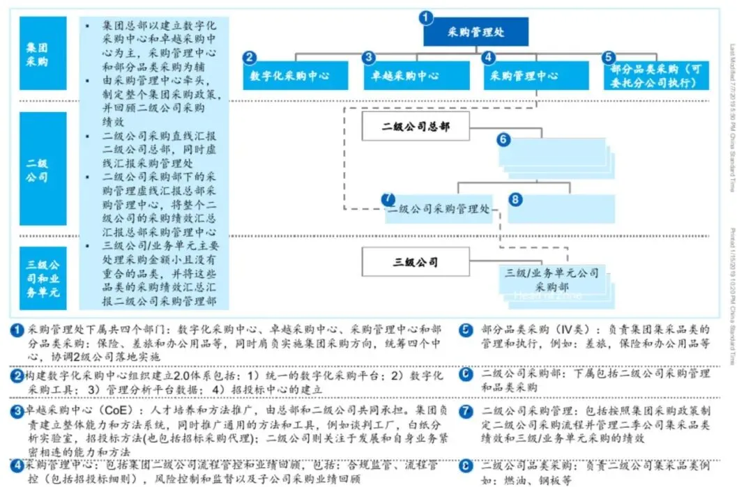 未来总部采购的核心定位正从传统执行向引导与赋能转变,将承担战略寻源、价值链协同、风险管控与成本优化四大职能。为支撑这一转型,采购管理处下设数字化采购中心、卓越采购中心、采购管理中心及部分品类采购部门,通过专业化分工推动采购体系系统性升级。数字化采购中心聚焦技术赋能,卓越采购中心致力于方法论沉淀,采购管理中心强化流程监控,品类采购则深入业务前线,形成前后端联动的治理架构。