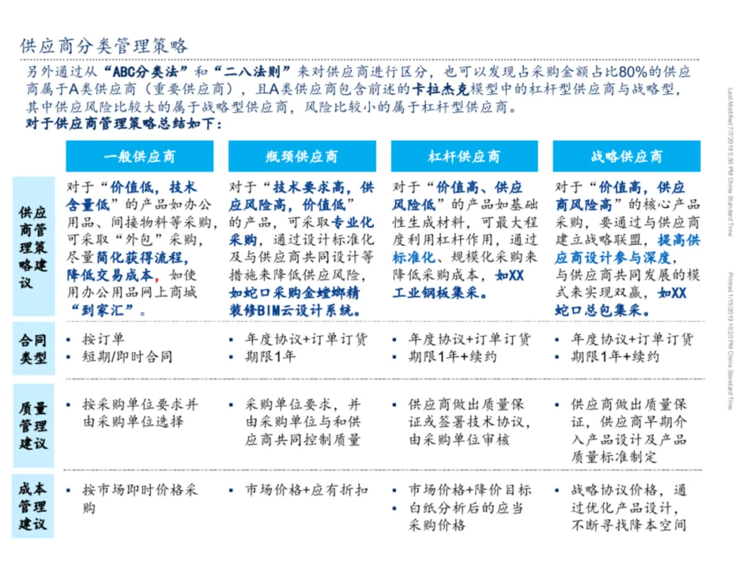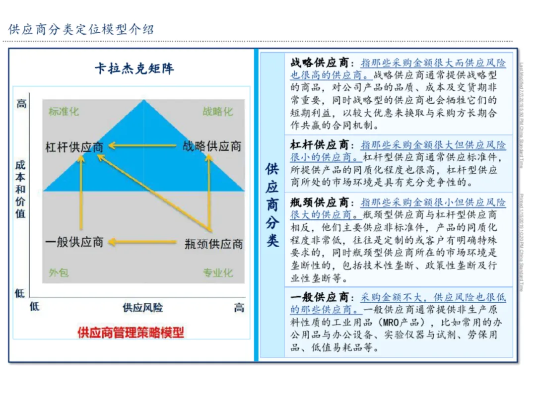 采购策略的制定需结合产品定位模型与企业议价能力分析。对高价值产品可推动集中采购与规格改善,对战略型供应商探索共同流程优化与关系重构。同时,通过扩大寻源范围分散风险,并运用总拥有成本模型进行最优价格评估。策略工具箱的灵活应用,可帮助企业在成本控制、质量保障与供应安全间取得动态平衡。