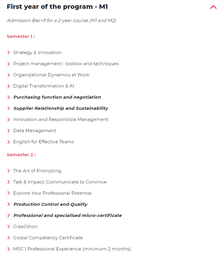 更多院校:HEC Paris巴黎高等商学院、ESSEC埃塞克商学院、ESCP欧洲高等商学院、EDHEC北方高等商学院、GEM格勒商学院、SAI项目、IMT项目、IP Paris项目、ParisTech项目、N+i项目、公立大学……