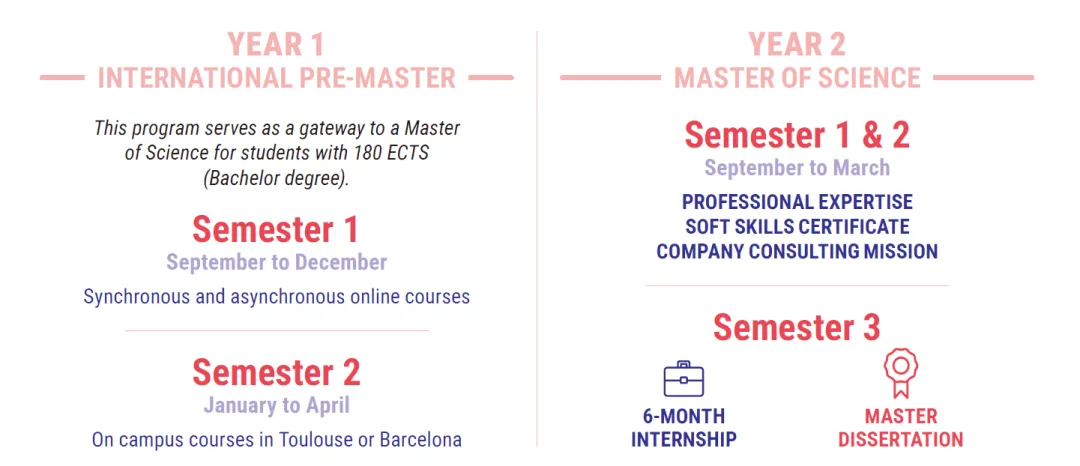 英语授课,1年or2年学制,图卢兹校区,学费19500€/1年制,25650€/2年制