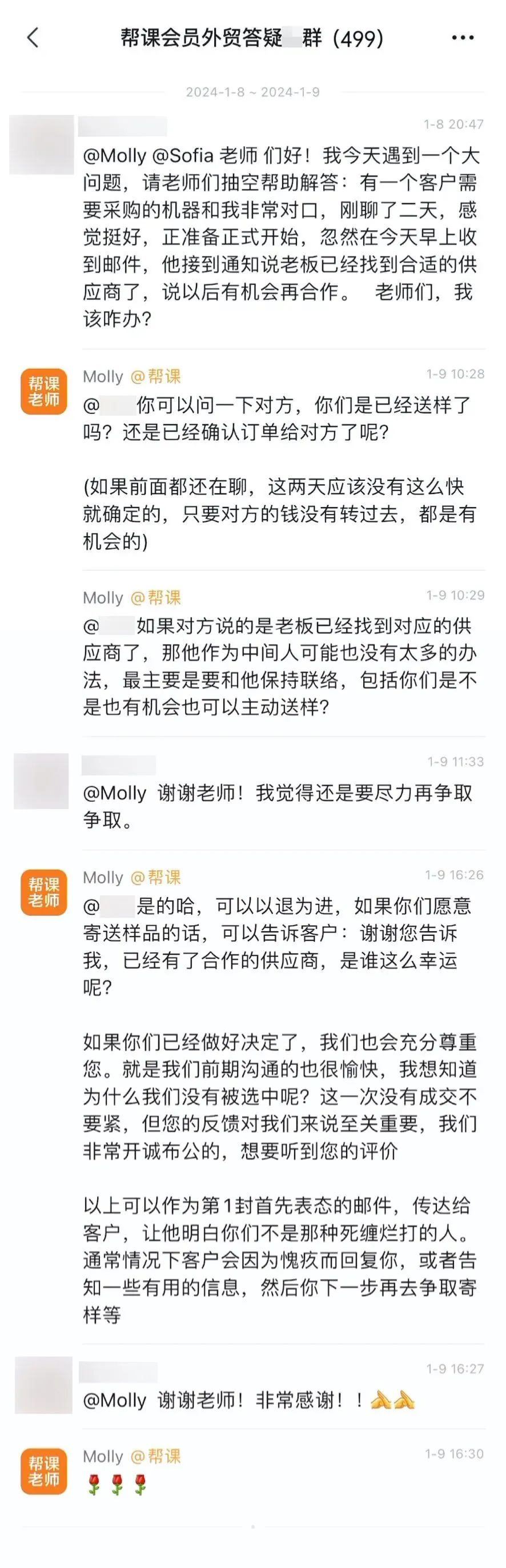 老师们好!我今天遇到一个大问题,请老师们抽空帮助解答:有一个客户需要采购的机器和我非常对口,刚聊了二天,感觉挺好,正准备正式开始,忽然在今天早上收到邮件,他接到通知说老板已经找到合适的供应商了,说以后有机会再合作。老师们,我该咋办?