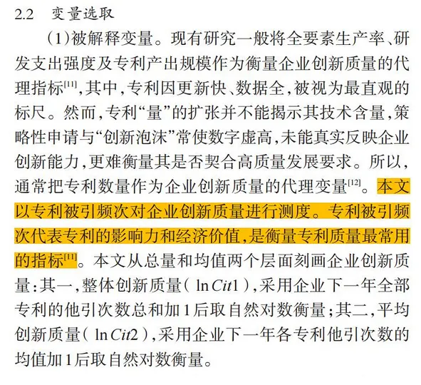 在学术研究中,专利被引用数据常被作为企业创新质量的代理变量