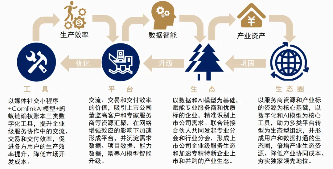 我们以 “为链接而生,为上市服务” 为口号,聚焦四大战略方向打造核心平台: