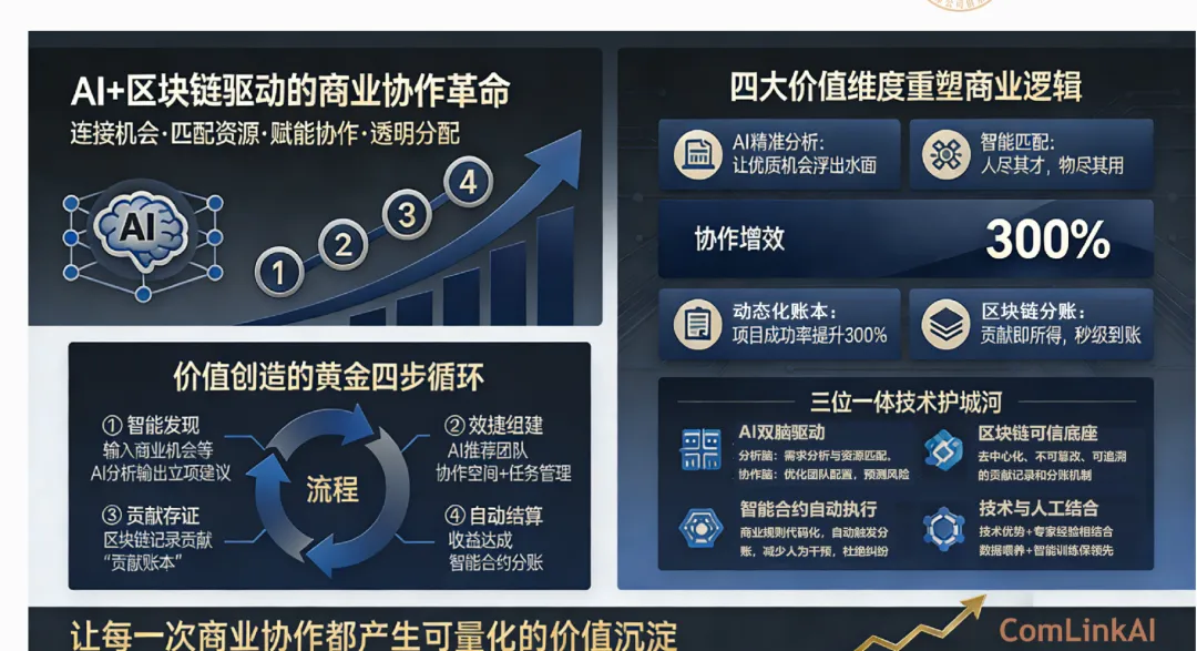 :利用区块链技术记录每位链接官的工作凭证,基于贡献度通过智能合约完成收益分配,确保分账的公平、透明、可追溯。