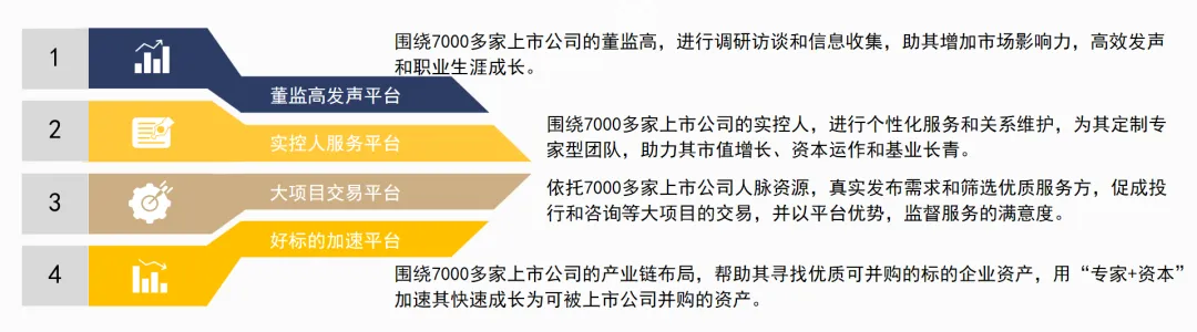 :为上市公司董监高提供行业交流、观点传播的专业渠道; - 实控人的服务平台