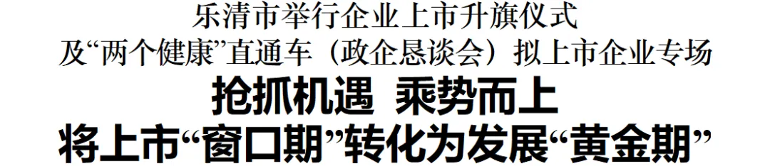 1月1日,乐清市举行企业上市升旗仪式,并召开“两个健康”直通车(政企恳谈会)拟上市企业专场。市委书记戴旭强参加并讲话,代市长胡立左主持企业上市升旗仪式。