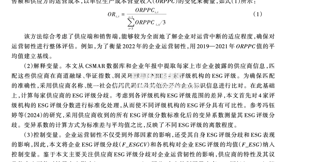 赵云辉,孙源,冯泰文,等.供应商ESG评级分歧何以影响企业运营韧性[J].中国工业经济,2024,(11):174-192.