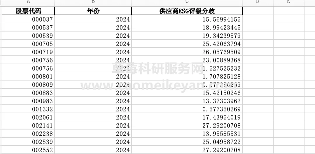 1.资料名称:2024-2009年上市公司企业供应商ESG评级分歧数据