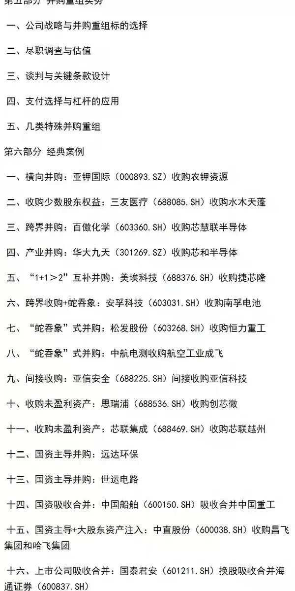 实务模块:《并购重组手册》专设“实务操作”章节,覆盖标的选择、尽职调查、支付方式设计、税负优化、ESG合规等实操环节,直接适配投行、企业战略部门的工作需求。