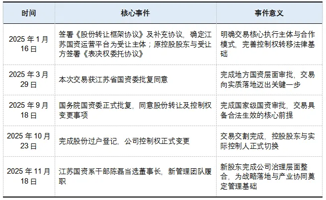 本次股权转让及控制权变更历经多轮磋商与审批,核心时间线如下: