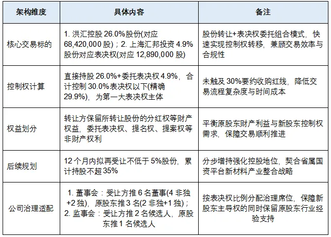 本次交易采用“股份转让+表决权委托”的组合架构,实现控制权平稳过渡,具体架构如下: