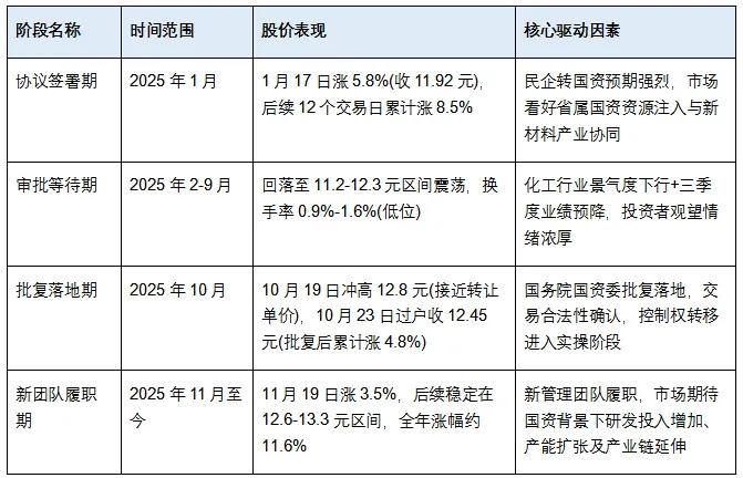 洪汇新材本次控制权变更通过“股份转让+表决权委托”的成熟模式,实现了民营企业与省属国资的优势互补。江苏省国有资本运营有限公司以清晰的架构设计、合理的定价机制及高效的执行节奏,成功获取公司控制权,既契合国家新材料产业发展与国有资本布局优化政策,也为洪汇新材带来资金支持、资源整合及产业协同赋能。从市场反应看,股价走势与事件节点高度联动,投资者对国资入主后的技术研发深化、产品结构升级及市场份额扩张寄予期待。未来随着国资资源注入与产业协同深化,公司有望突破行业周期波动瓶颈,巩固国内特种氯乙烯共聚物领域的核心龙头地位,打造“化工新材料+高端改性材料”的多元发展新格局。