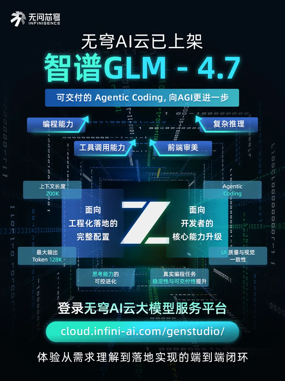 03/ 智谱GLM-4.7上架无穹芯穹AI云平台近日,启明创投投资企业智谱GLM系列最新旗舰模型GLM-4.7重磅发布,已在启明创投投资企业无穹芯穹AI云平台完成上架。相较前代GLM-4.6,GLM-4.7在编码能力、交互体验与复杂推理等多个维度实现了系统性升级,尤其在代码生成领域展现出了惊人的表现: