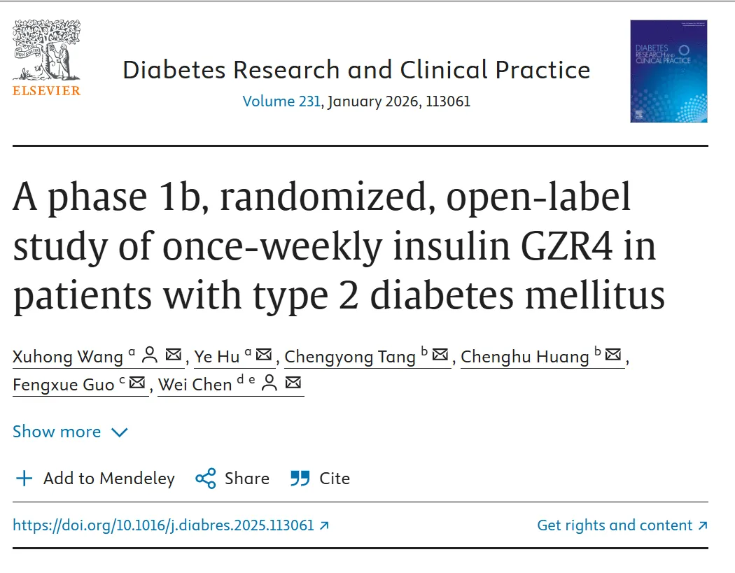 甘李药业胰岛素周制剂GZR4 Ib期研究成果在Diabetes Research and Clinical Practice发表