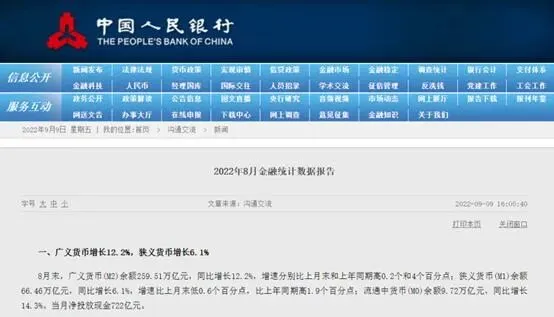 8月末,广义货币(M2)余额259.51万亿元,同比增长12.2%,又创今年以来同比增速新高, 目前M2已连续5个月保持两位数增速。