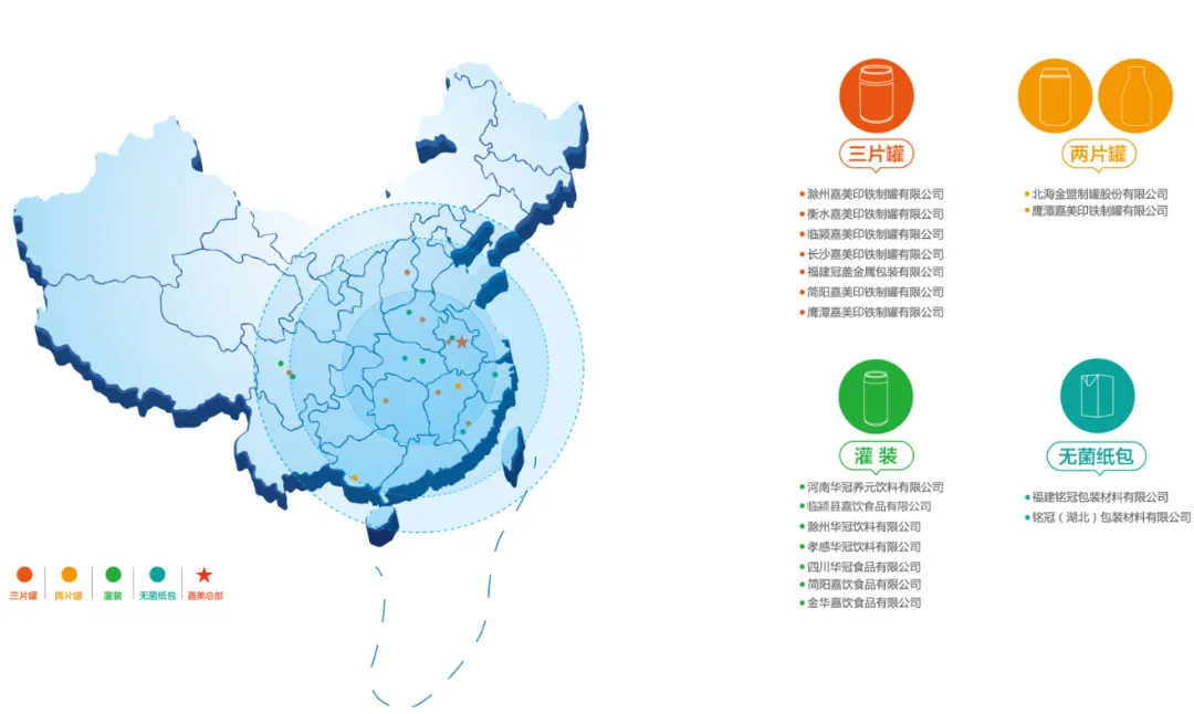 公司的业务规模在全国金属包装行业里排名靠前,特别是在三片罐这个细分市场,它的占有率大概能达到五分之一。它在安徽、河南、四川、福建等多个省份设立了十几个生产基地,形成了覆盖全国的供应网络,这能有效服务全国性客户并降低运输成本。