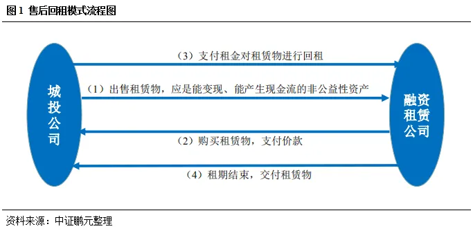 由于实际上融资租赁公司和城投公司的合作项目基本上都采用融资性更强的售后回租模式,而非直接租赁模式,故本小节仅探讨售后回租模式。具体来看,售后回租模式的流程如图1所示。其本质上是城投公司先通过出售租赁物将固定资产转化为货币资本,再通过支付租金的方式对租赁物进行回租,进而保留对租赁物的所有权。需要提醒的是,多数城投公司都拥有大规模的政府注入资产或由工程建设形成的固定资产,但这其中有不少资产属于难以变现、无法产生现金流的公益性资产,在开展融资租赁时不能以该部分资产作为租赁物,否则会构成重大违规。2018年4月邵阳城投就曾因利用政府道路管网等公益性资产开展融资租赁等举债行为,被审计署点名批评。