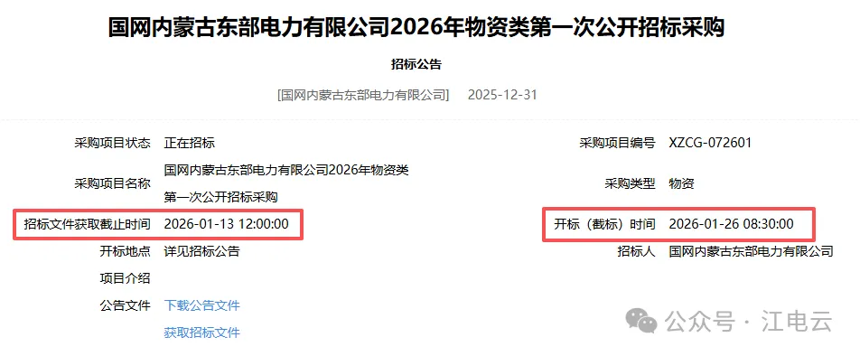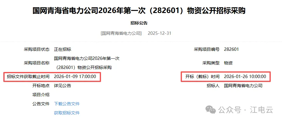 国网江西电力2025年子公司、战新产业、原集体企业第二次物资类框架协议公开招标采购中标候选人公示 国网山西电力2026年电网、非电网零星物资框架公开竞争性谈判采购 计量箱32包!国网辽宁电力2025年第三次物资协议库存招标采购 国网浙江电力(台州、绍兴、湖州、衢州、杭州、金华)2025年市场化项目第十四、十五次物资公开招标采购 国网江苏电力2025年原集体企业第十次物资协议库存中标候选人公示-1-2-3 融合柱断重大变化!2026年度配网一二次融合成套柱断及10KV柱上台成套设备物资采购联合资格预审