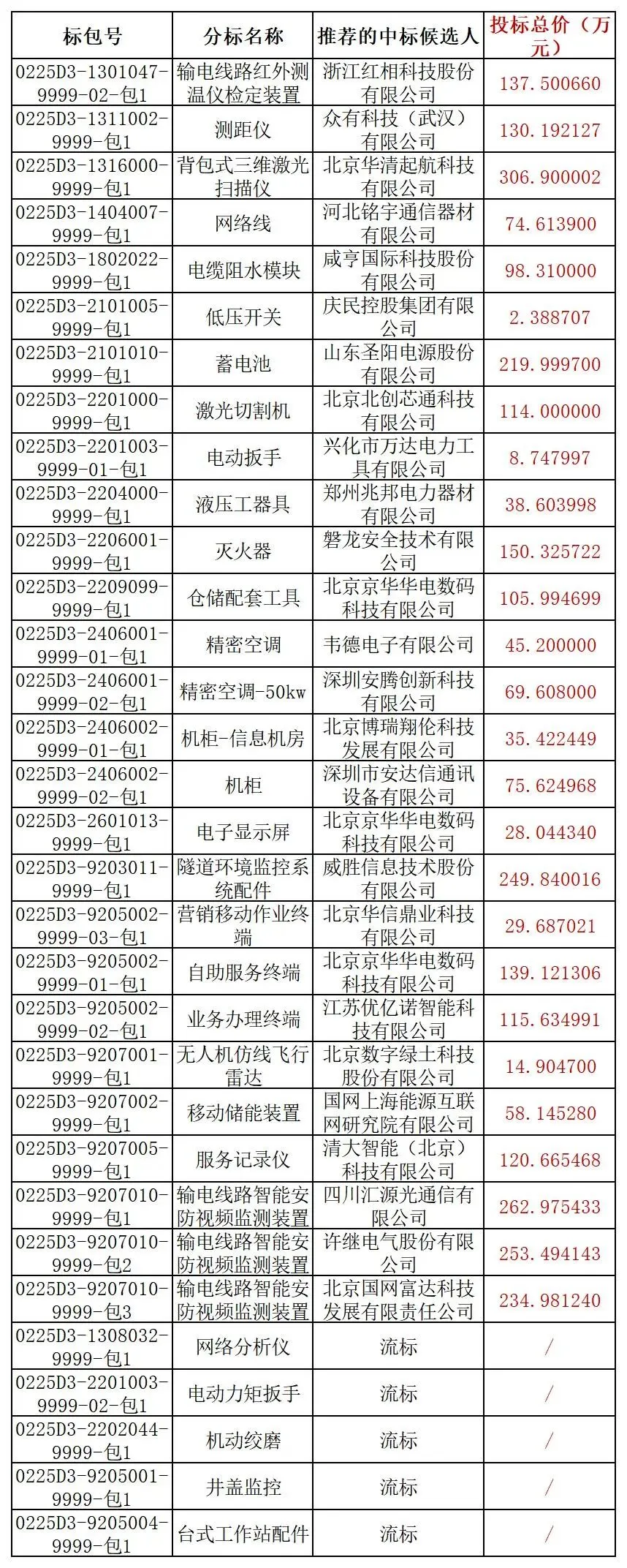 国网北京市电力公司2025 年第二次电网零星物资框架招标采购项目评标工作已经结束,现将评标委员会推荐的中标候选人予以公示,公示期 3 日。投标人或者其他利害关系人若对评标结果有异议的,请在中标候选人公示期间以书面形式(扫描件)提出。
