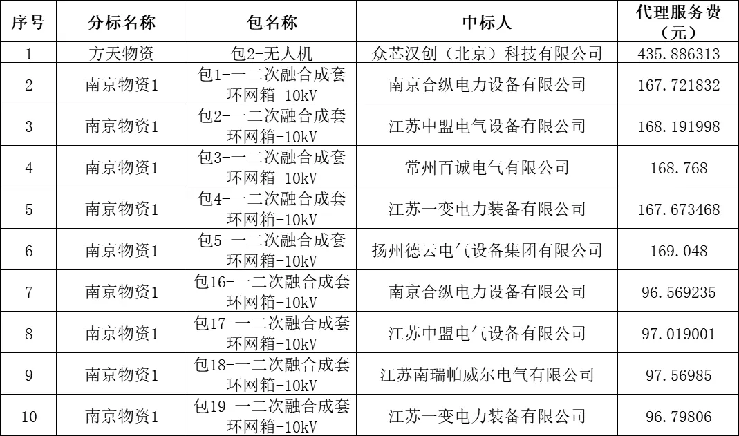 国网江苏电力2025年原集体企业第十次物资公开招标采购-1项目-中标结果公告