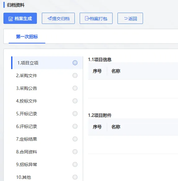电子档案归集:公告、文件、澄清答疑、开评标记录、评标报告等材料集中沉淀,形成可追溯档案闭环。