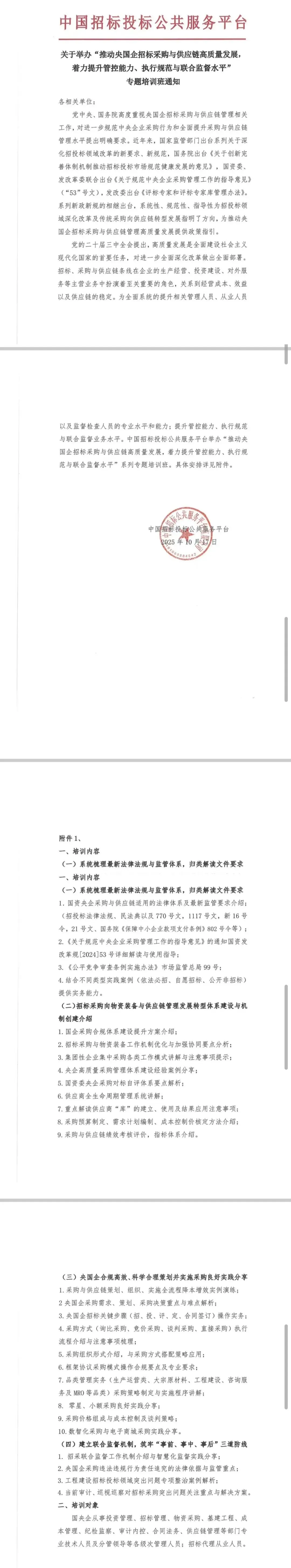 中国招标投标公共服务平台关于举办“推动央国企招标采购与供应链高质量发展,着力提升管控能力、执行规范与联合监督水平”专题培训班通知