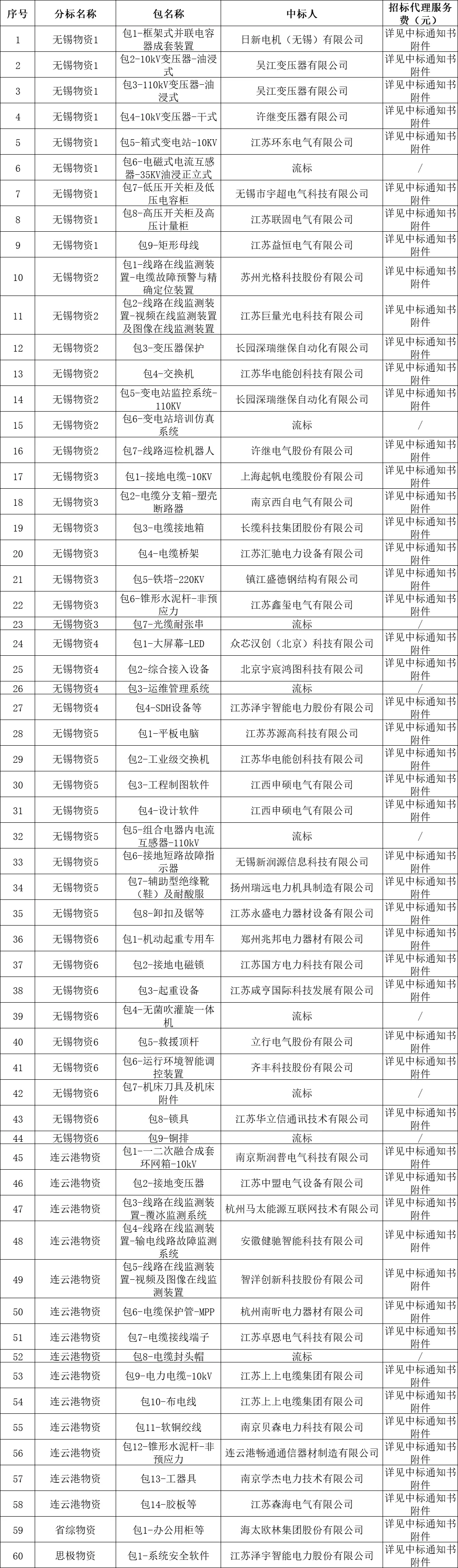 国网江苏电力2025年原集体企业第十次物资公开招标采购-1项目-中标结果公告